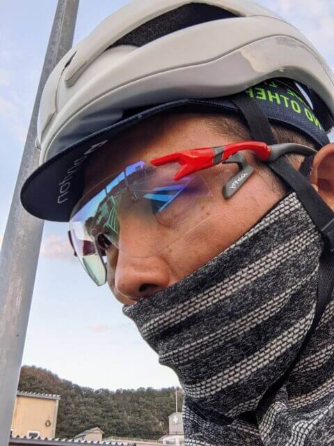ノーズパッドが無いだけで結構な解放感があります。そして通気性がメチャメチャ良くて、「ノーズパッドの無いだけでこんなに違うの!?」とびっくりするくらい風抜けが良いのが体感できます。そのお陰でレンズがかなり曇りにくく、僕が今まで使ってきたサングラスで一番曇りにくいです。