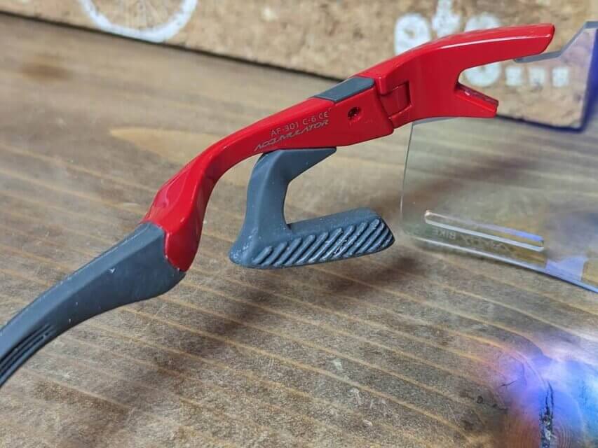 このサングラス最大の特徴のサイドパッド。これも自在に変形するので頬骨の上に乗るような感じで調整します。