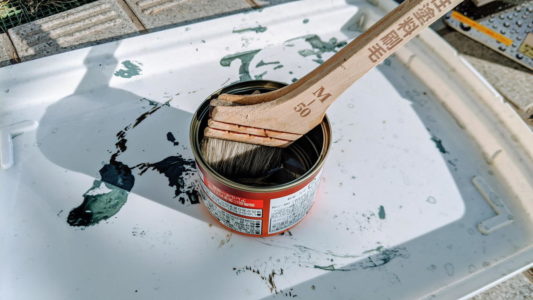 塗料かと思ってたらシャバシャバの液体でした。刷毛で塗るというよりかは濡らすような感じです。