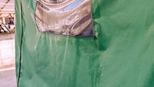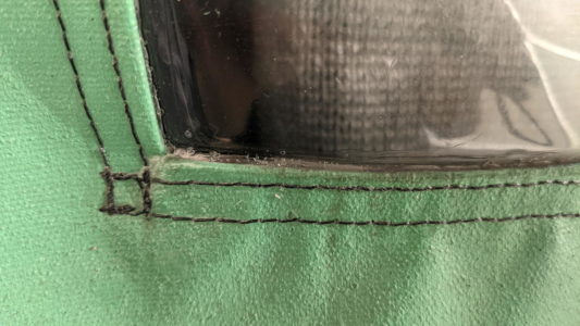 幌を止める紐がアチコチに有るんですがこの紐が毛細管現象で外から水を吸い上げてビチャビチャに濡れてました。紐の周りの縫い目を念入りにシームしたのですが止まらず、ムムム・・・