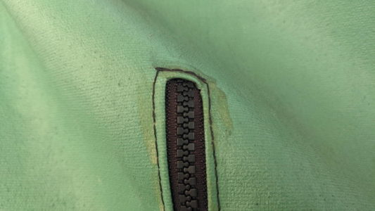 今度は折り返しの部分も塗ってみました。また雨の日に確認するとまだ濡れてる!何処から濡れてるのか見ても縫い目からは入ってきてません。