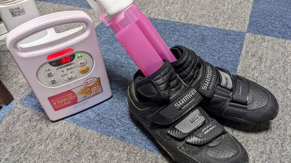 布団乾燥機を使ってシューズ内をホッカホカにしておきます。この布団乾燥機、布団を乾燥したりするだけでなく、濡れた靴や衣類、その他に色んな物が暖める事が出来て何かと便利なアイテムです。