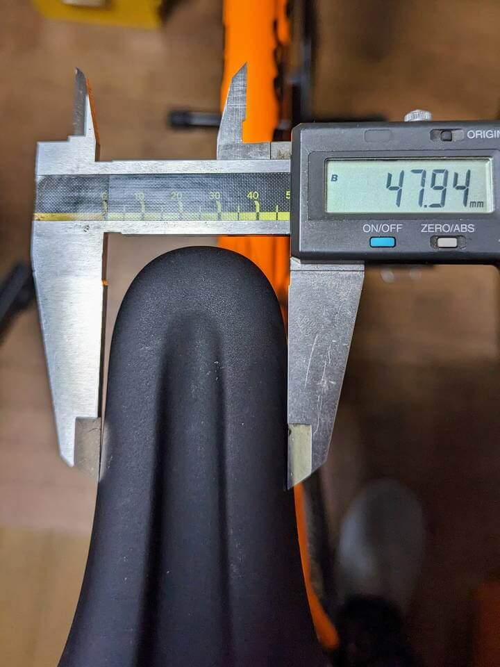 サドル先端部は約48mmと割合太め。人によっては擦れたりするかも。