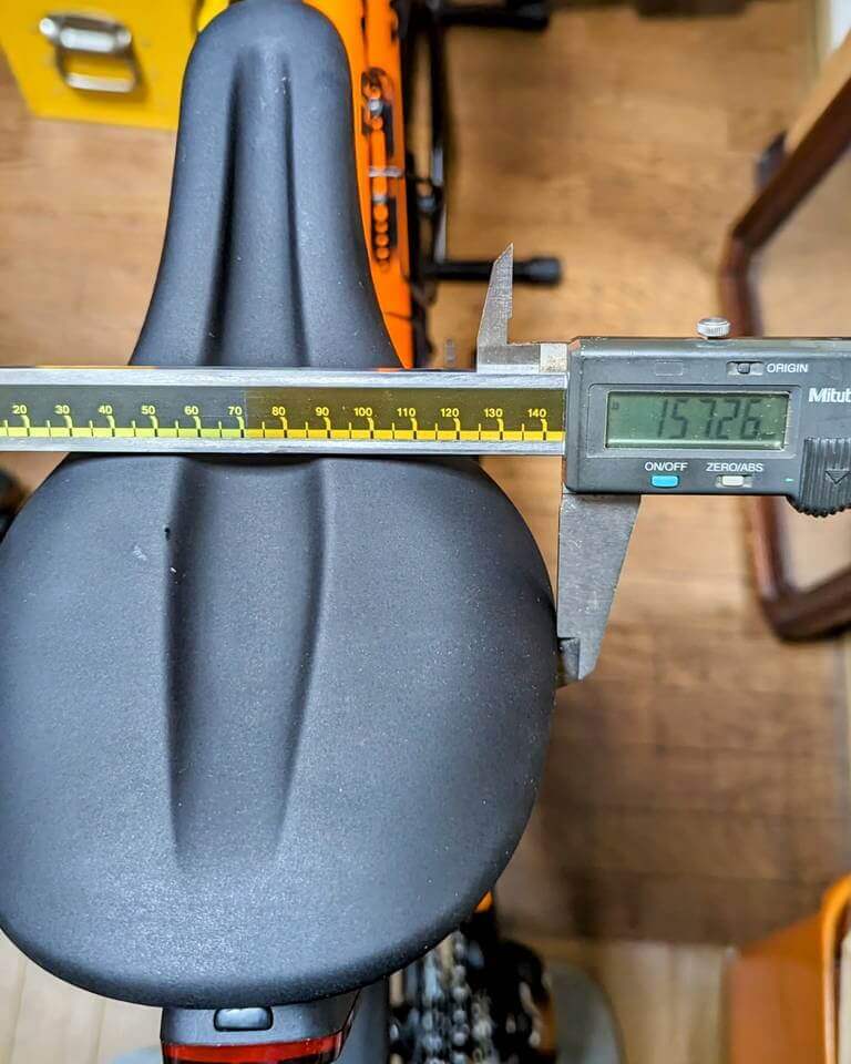 一番太い部分が約157mm。結構ワイドな部類のサドルだと思う。
