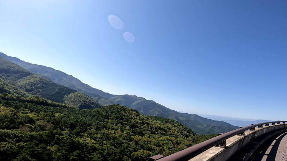 ループ橋っぽい所に掛かるとあたり一面青空が広がってビューテフォーな景色!ただ高所恐怖症にはチト厳しい高さ(汗)