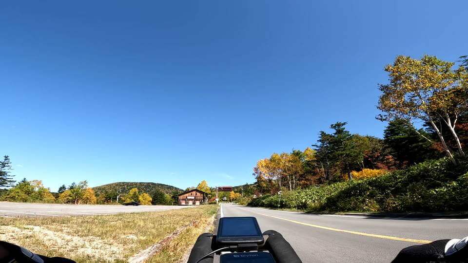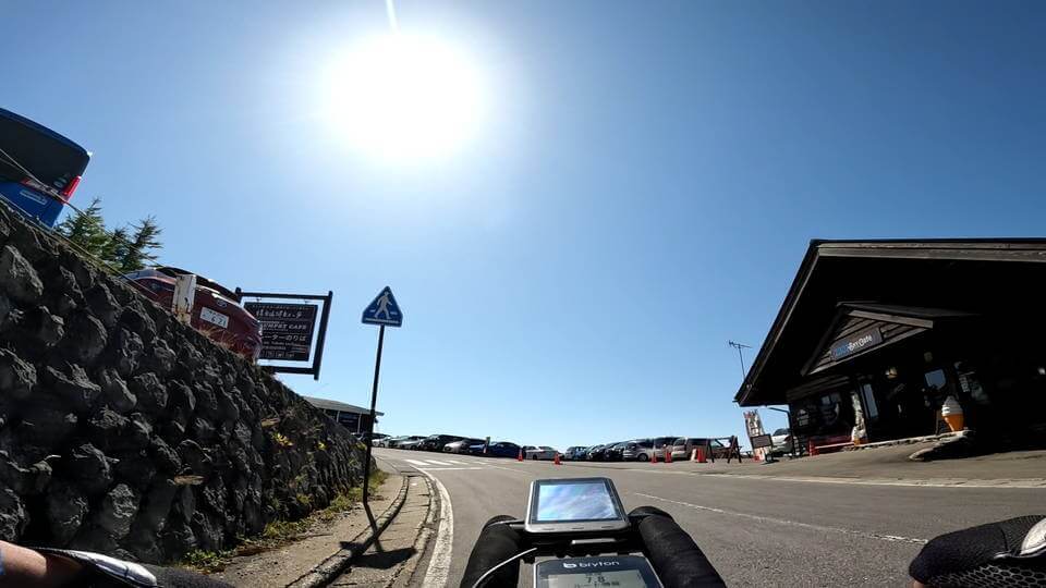 前回ハンガーノックになってヘロヘロの状態で駆け込んだ喫茶店『2307スカイカフェ』とすぐ上にある横手山ドライブインを通過。あともう少しや!