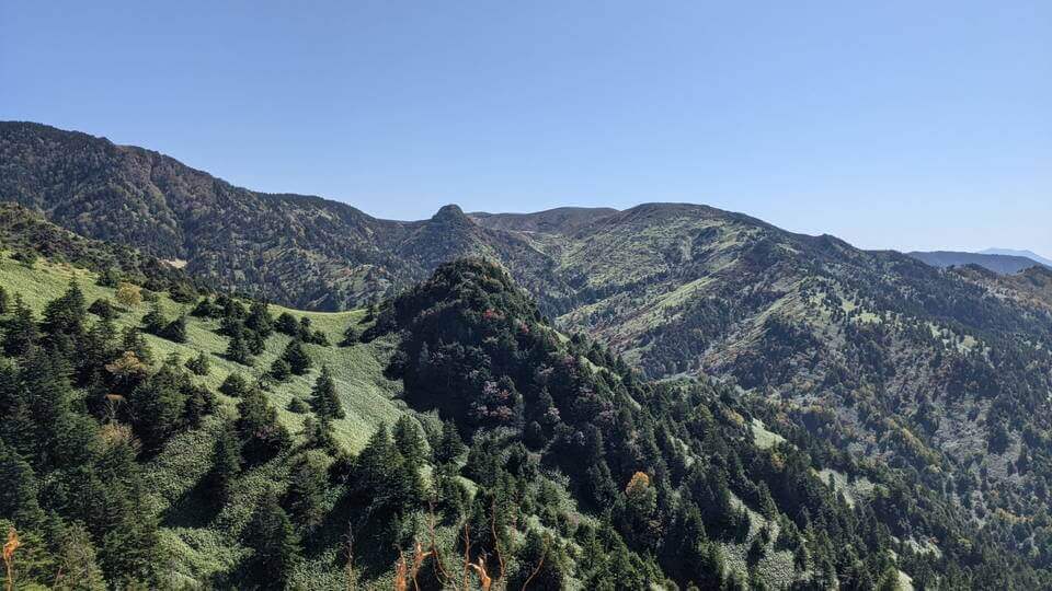 このあたりから山の上側が見え始めたり、木々の切れ間から下の綺麗な景色が見え始めてめっちゃテンション上がってくる。