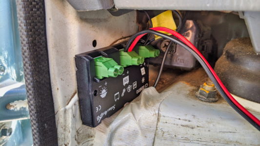 取り付けといってもソーラーチャージャーをコントローラーに繋げてコントローラーからバッテリーに繋ぐだけです。まずはバッテリー線を引っ張ってきました。
