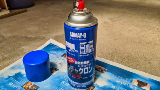 つや消しブラックで塗装。このアサヒペンの高耐久ラッカースプレーは少し高いですが耐久性高くて結構綺麗に仕上がるのでお気に入りです。