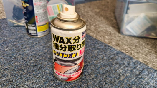 マスキングしてシリコンオフで脱脂。脱脂は仕上がりにメチャ影響するのでしっかりと。