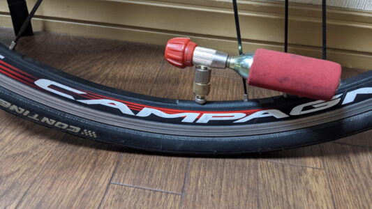 パンクもある程度回数をこなすと慣れてくるのですが、何度やっても慣れないのがチューブ交換後の空気入れ作業。ある程度高圧になってくるとポンプを押す重さが重くなるので相当シンドイです。
