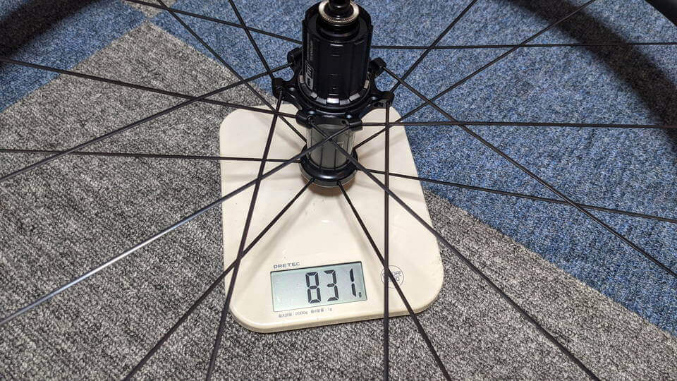 リア831g。F+R合計で1510g。カタログ値1452gと比較すると58g重いですがリムテープ分(40g位?)を考えるとマズマズの重量かな。チューブレスレディですが当面の間はクリンチャーで使ってみます。