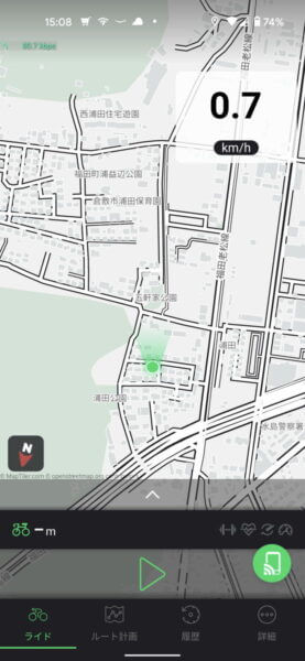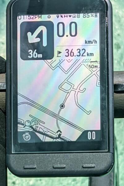 ナビを中断するときはスマホで画面左上の☓をタップする必要があるのですが、Pixel5だとちょうどその位置にインカメのパンチホールがあってタップ出来ず中断が出来ません。一応サイコン側の電源を落とすと☓の位置がずれてタップ出来るようになるが、これは何とかして欲しいところです。