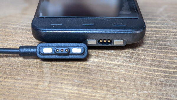 マグネット付きの専用コネクタにて充電をする仕様になってます。専用端子は善し悪しの意見が分かれるところですね。