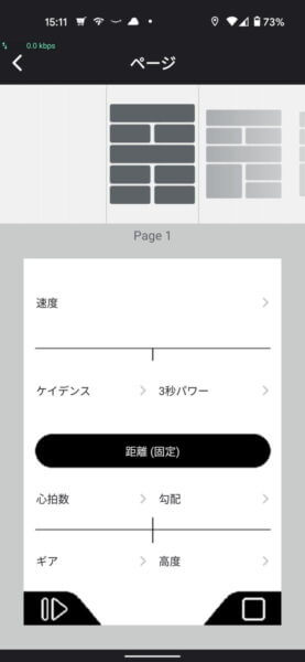 続いてデーターフィールド設定。このあたりの設定は他のサイコンと同じなので戸惑うことは無いです。表示もパワーメーター関係、電動シフト関係の表示もちゃんと一通りあります。ブライトンあたりの下位モデルだと表示出来ない項目があるのよね。