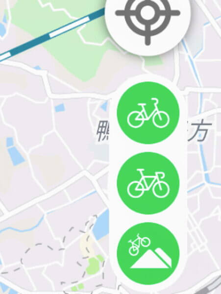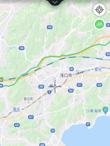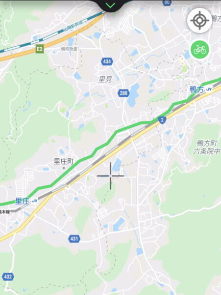 真ん中のロードバイクが最短距離で一般道を含む最短の道を案内します。