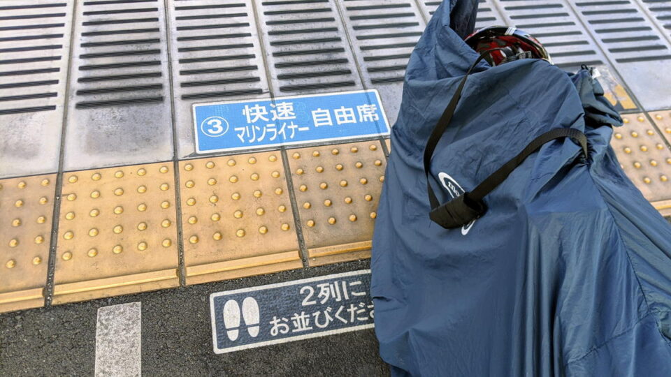 普段はこんな感じで輪行袋にヘルメットをぶら下げるスタイル。