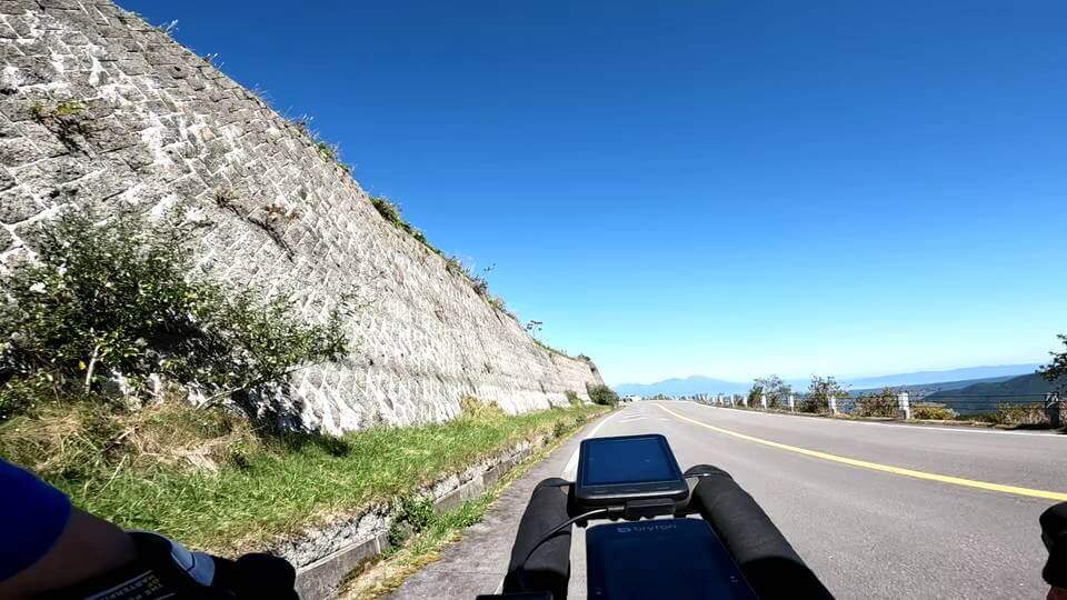 路面がコンクリートになり六角形、綾目、横線の滑り止めの振動が凄い!!!思ったより距離も長くてこれは正直ロードで下る道じゃ無いな。