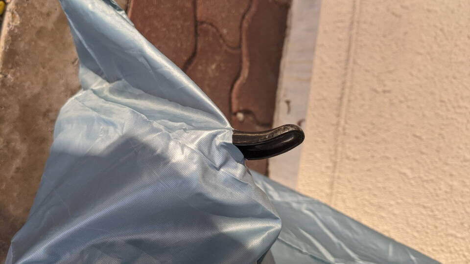 倒した時に空いたっぽい。お気に入りのPEKOさん謹製軽量輪行袋が・・・/(^o^)\