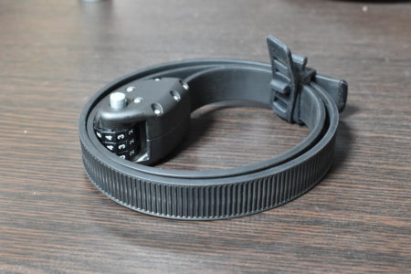 超メジャーなクロップスのワイヤー錠です。ダイヤル式のため鍵が不要です。180cmとワイヤーが長いのにも関わらずくるくるカールしているので非常にコンパクトな為、持ち運びが簡単です。細いワイヤーなのでニッパー等で瞬殺れさます。なので基本的には自転車が常に視界内に入る時に使っています。